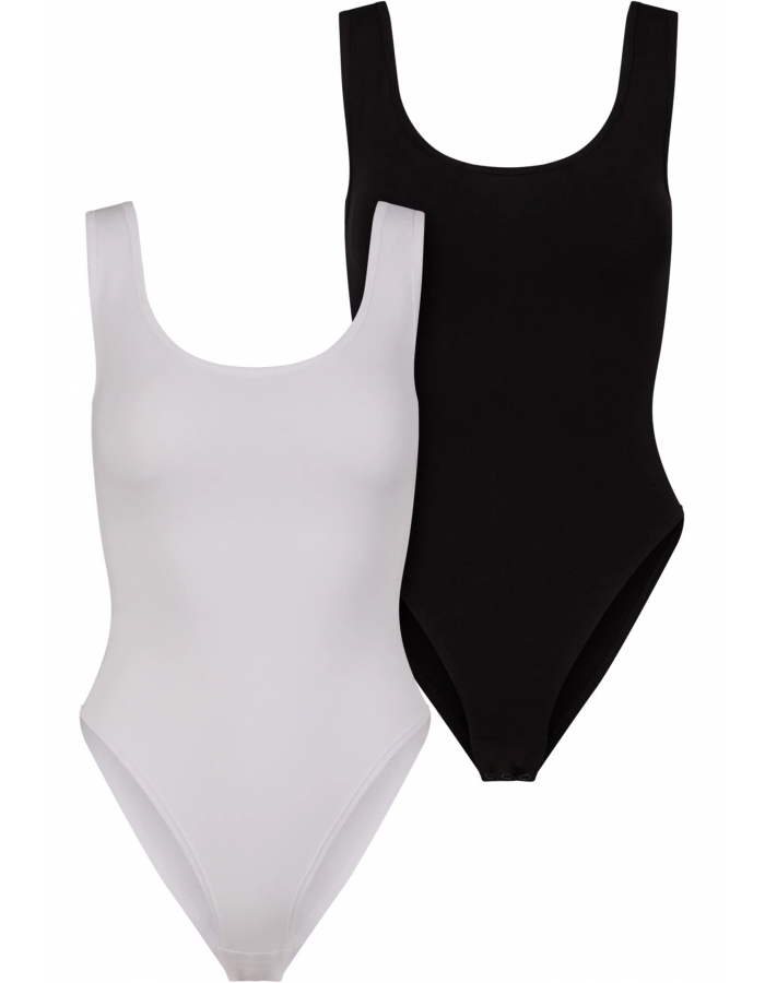Dámské body v dvoubalení je praktický a stylový set, který nabízí dva kusy bílého a černého body ve stejném designu. Toto body je vyrobeno z organické bavlny, což zajišťuje příjemný pocit na pokožce a zároveň je šetrné k životnímu prostředí. Díky strečovému materiálu se těsně přizpůsobí tělu, zvýrazní vaši postavu a poskytuje pohodlí po celý den.