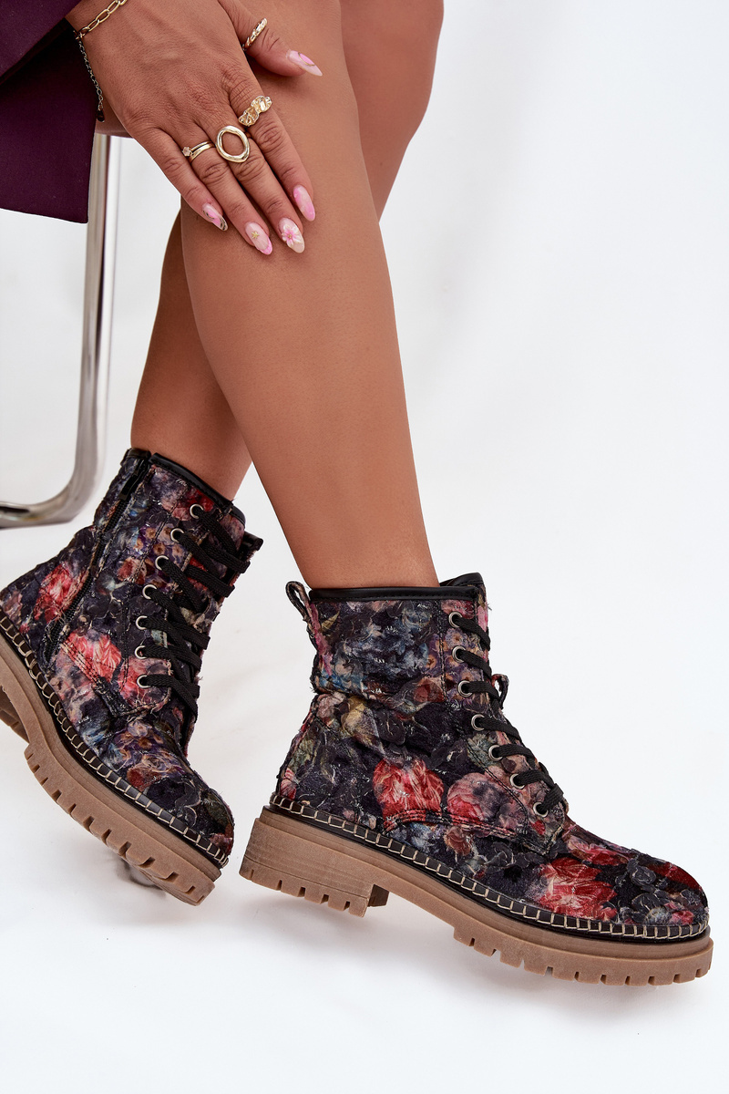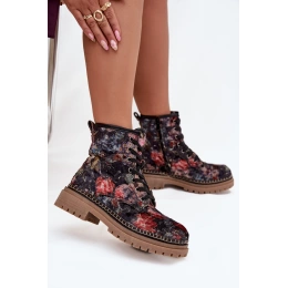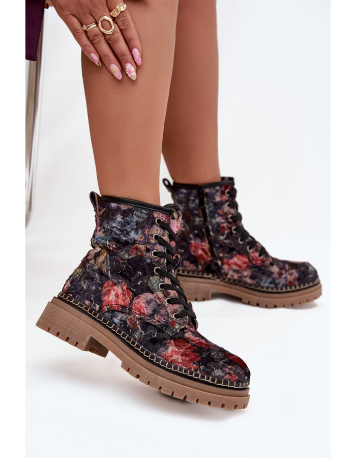 Cholevka s 3D květinovým vzorem, který dodává botám originální a ženský charakter.