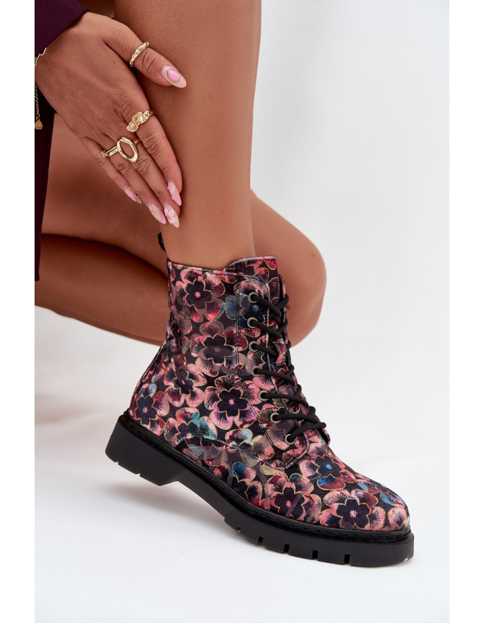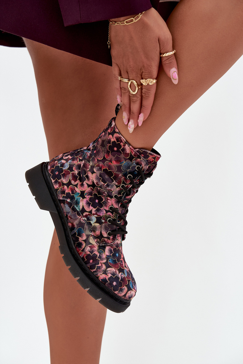 Cholevka zdobená barevnými květinami, které dodávají botám výrazný a originální vzhled.