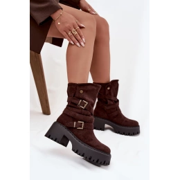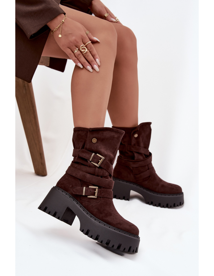 Dámské botky z eko semiše osazené masivním podpatkem, který zajišťuje stabilitu při každém kroku. Zaoblené špičky dodávají botám klasický a elegantní vzhled.