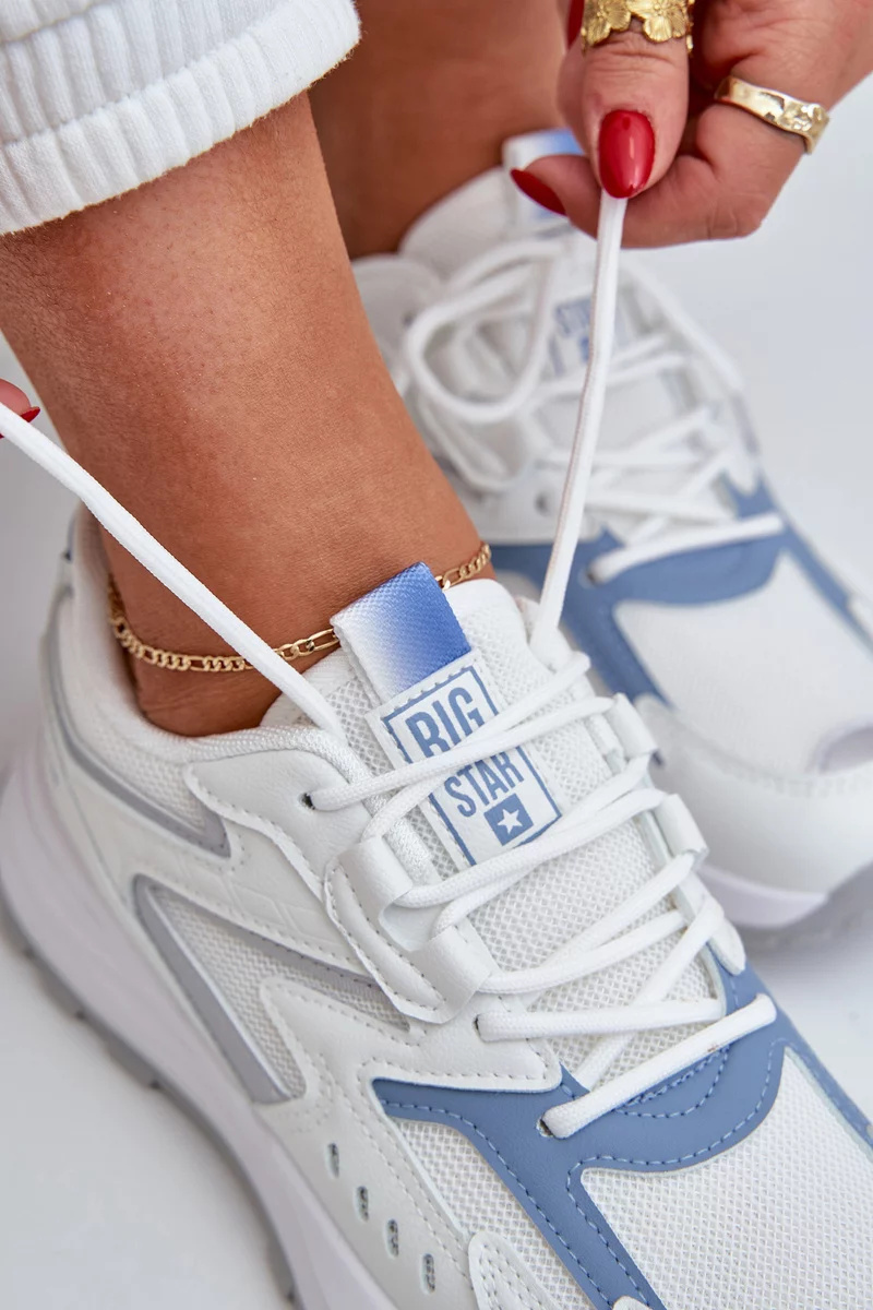Moderní dámské sportovní boty od značky Big Star v kombinaci bílé a modré barvy zaujmou nejen vzhledem, ale i funkčností. Díky lehké konstrukci, systému HI-POLY a prodyšnému svršku jsou ideální volbou pro každodenní nošení, sport nebo aktivní víkendy. Komfortní stélka tlumí nárazy a zajišťuje pohodlí i při delším pohybu.