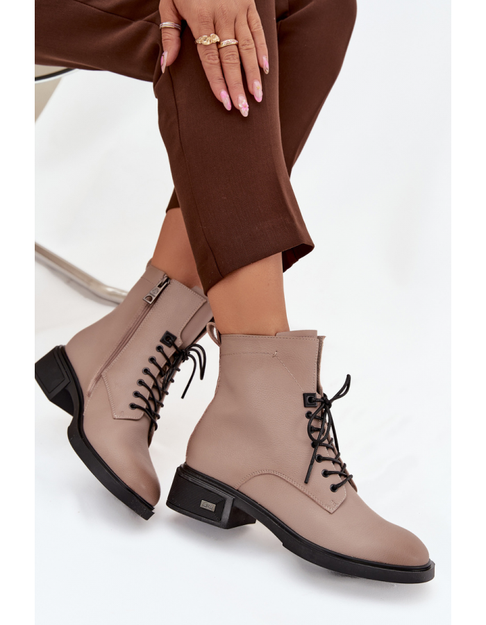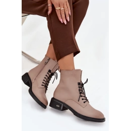 Model je vyroben z přírodní kůže, osazen nízkým podpatkem pro maximální pohodlí. Kombinace šněrování a zipu umožňuje snadné obouvání a perfektní přizpůsobení boty noze. Zaoblené špičky dodávají botám univerzální a nadčasový vzhled.