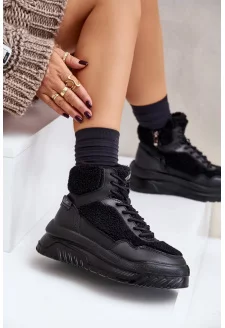 Tenisky Sportovní Boty Dámské Zateplené Na Masivní Podešvi Černé Verissha