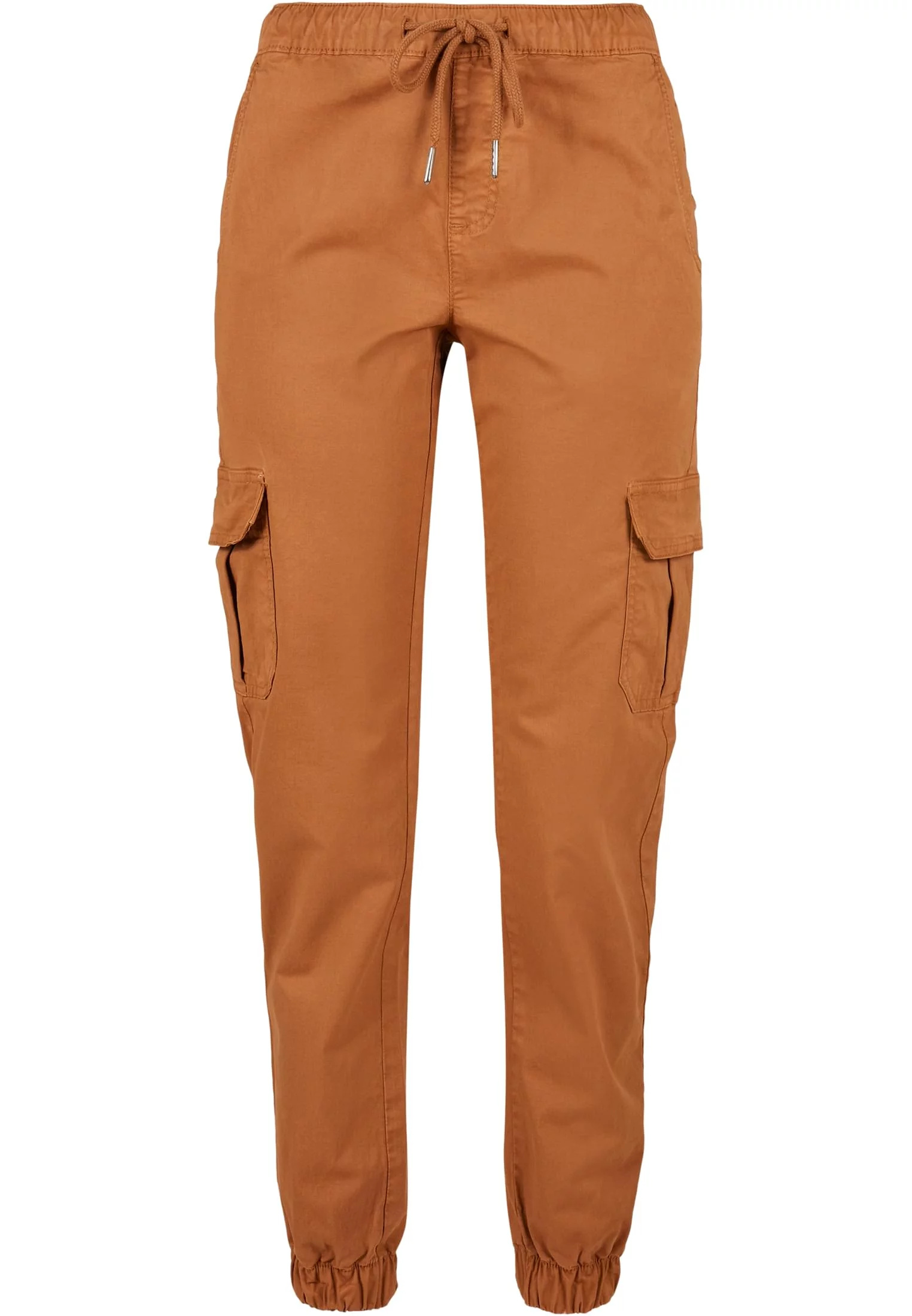 Dámské cargo joggingové kalhoty s vysokým pasem z karamelu