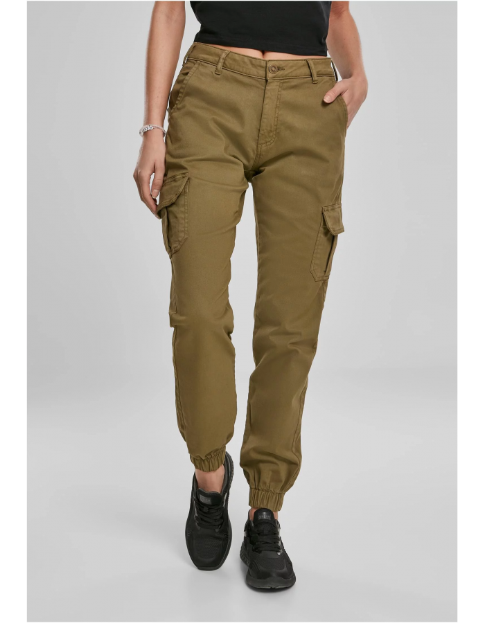 Dámské cargo kalhoty s vysokým pasem letní olivové