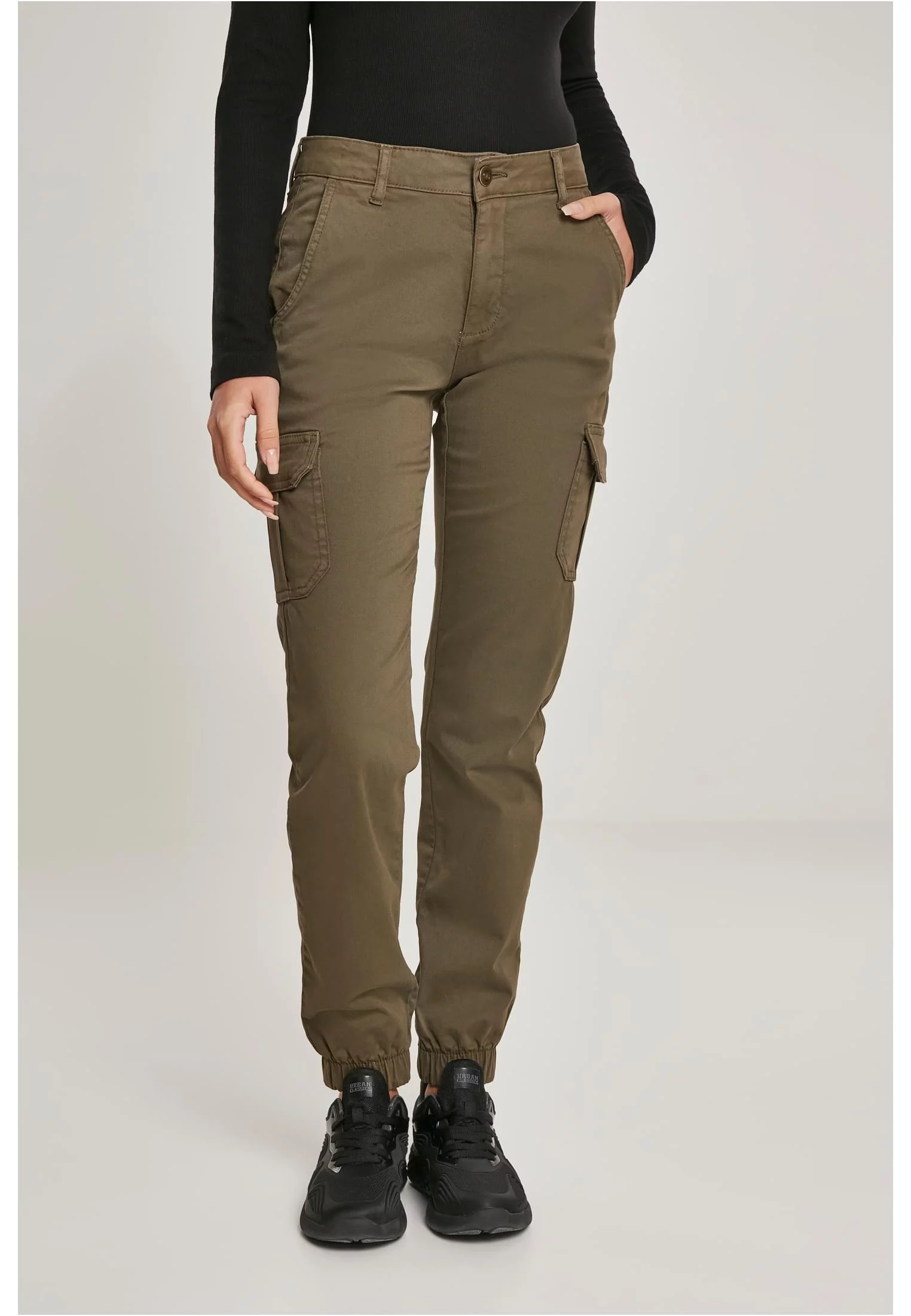 Dámské cargo kalhoty s vysokým pasem olivové