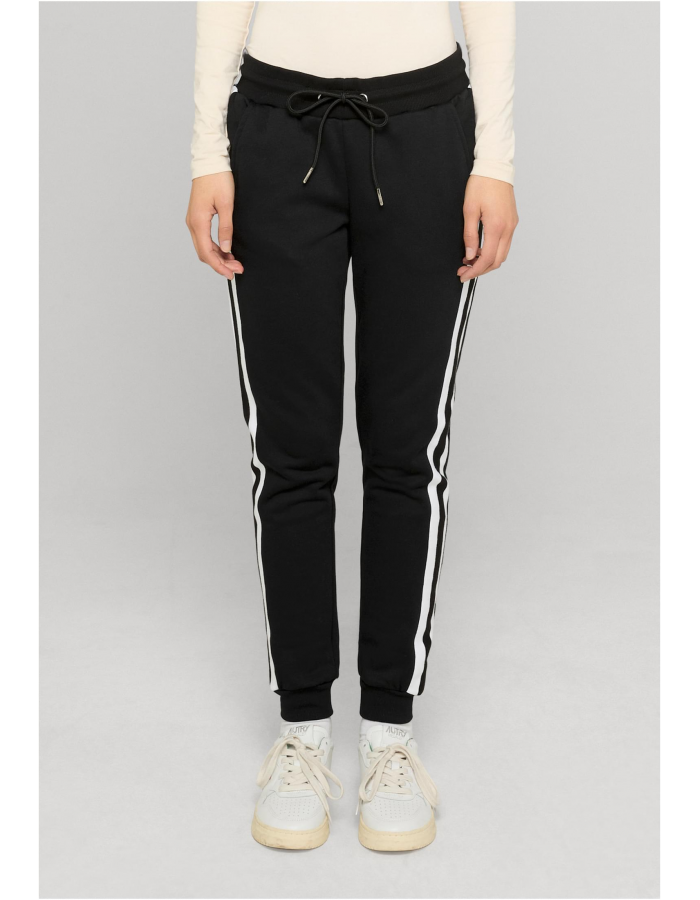 Ležérní, pohodlné, stylové: tyto rovné školní tepláky vám poskytnou pohodlí jako pár jednoduchých joggingových kalhot, aniž byste museli obětovat pěkný a přiléhavý střih. Teplákové kalhoty pohodlně sedí na bocích a jsou zakončeny širokými manžetami těsně nad kotníky. Dokonale si je přizpůsobte své velikosti pomocí praktické šňůrky. Městské pouliční oblečení v celé své kráse!