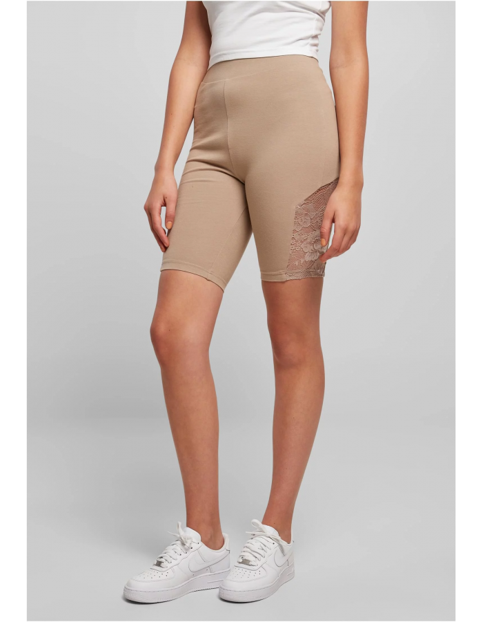 Dámské cyklo šortky s vysokým pasem s krajkovou vložkou softtaupe M