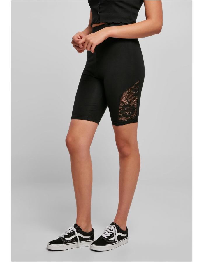 Dámské cyklošortky s vysokým pasem s krajkovou vložkou černé S
