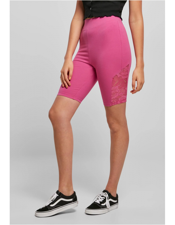 Dámské cyklo šortky s vysokým pasem s krajkovou vložkou světlefialové L