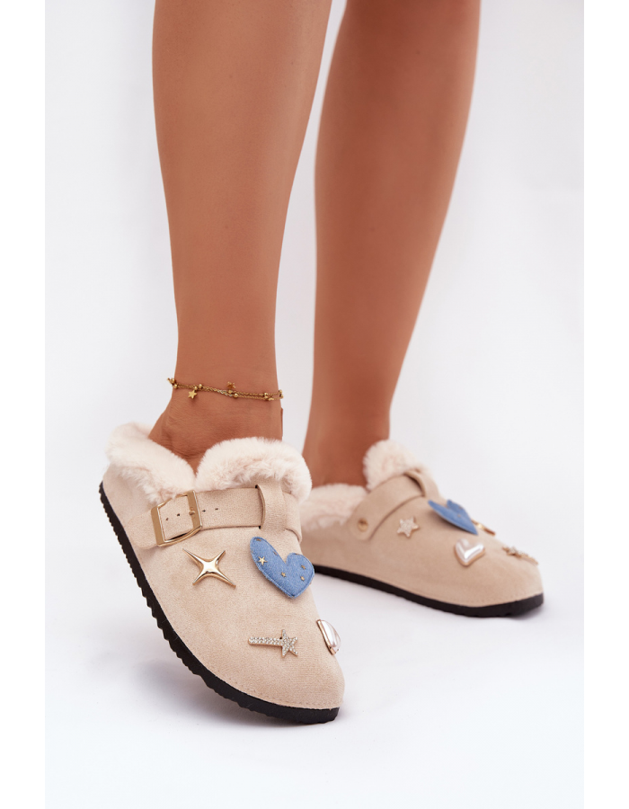Stylové a pohodlné domácí pantofle Thalora v béžovém provedení kombinují komfort s elegantním designem. Boty jsou zdobené dekorativní sponou a měkkým kožíškem, který zajišťuje teplo a pohodlí během chladných dní. Zateplené vnitřní stélky poskytují extra komfort, zatímco nízký střih umožňuje snadné nazouvání a pohodlné nošení po celý den.