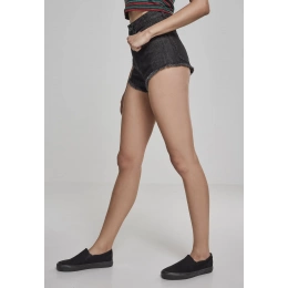 Dámské organické Stretch Denim 5 Pocket Shorts, černé seprané