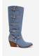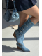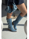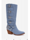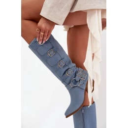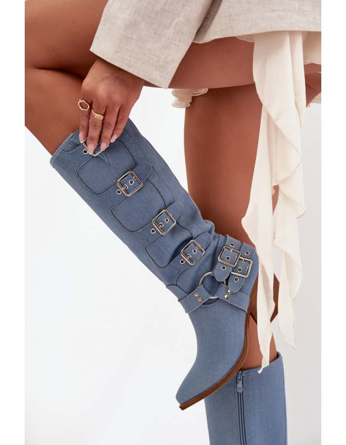 Originální dámské kozačky Fivelle v netradičním džínovém provedení přinášejí moderní spojení kovbojského stylu a městské módy. Ozdobné přezky podtrhují celkový vzhled a dodávají botám výrazný charakter. Stabilní podpatek nabízí pohodlný krok a jemně prodlužuje siluetu. Jeansové provedení dodá každému outfitu odvážný a módní nádech.