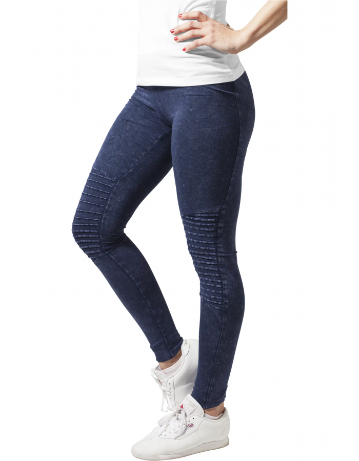 Elastický materiál a strečový pas zaručují pohodlné nošení. Džínové prádlo a motorkářský prvek na kolenou dělají z těchto legín, které musíte mít.