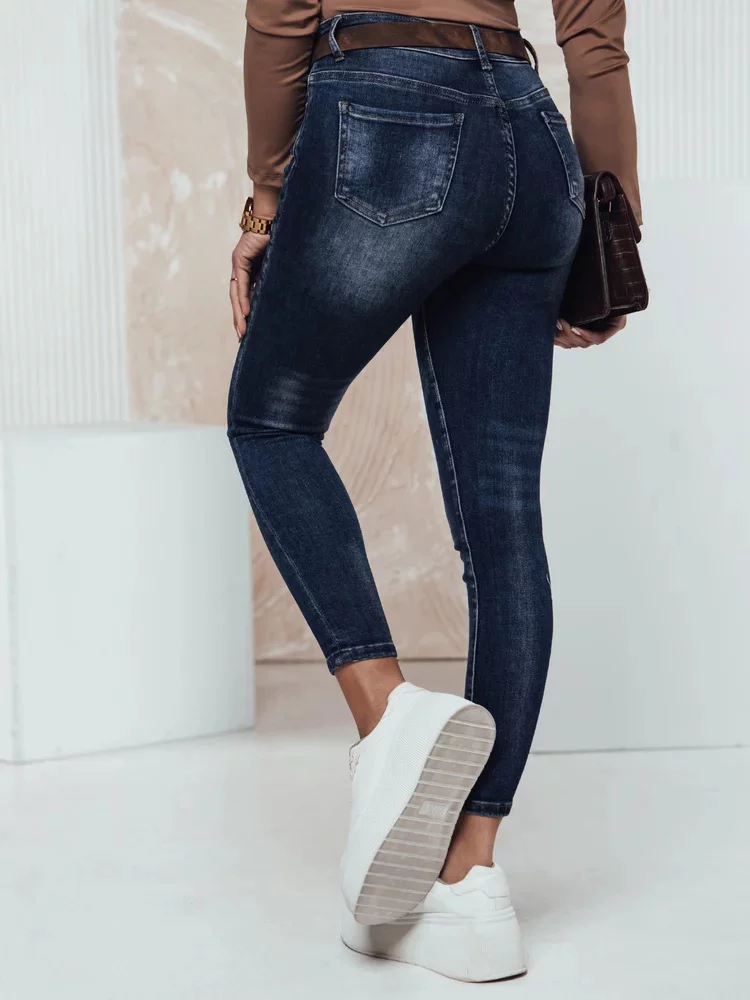 Stylové dámské džíny s přiléhavým střihem, které zajišťují pohodlí a zdůrazňují postavu. Dokonalé pro každodenní stylizace, jak ke teniskám, tak k elegantnějším botám. Jejich univerzální design skvěle ladí s různými doplňky, vytvářející módní vzhled.