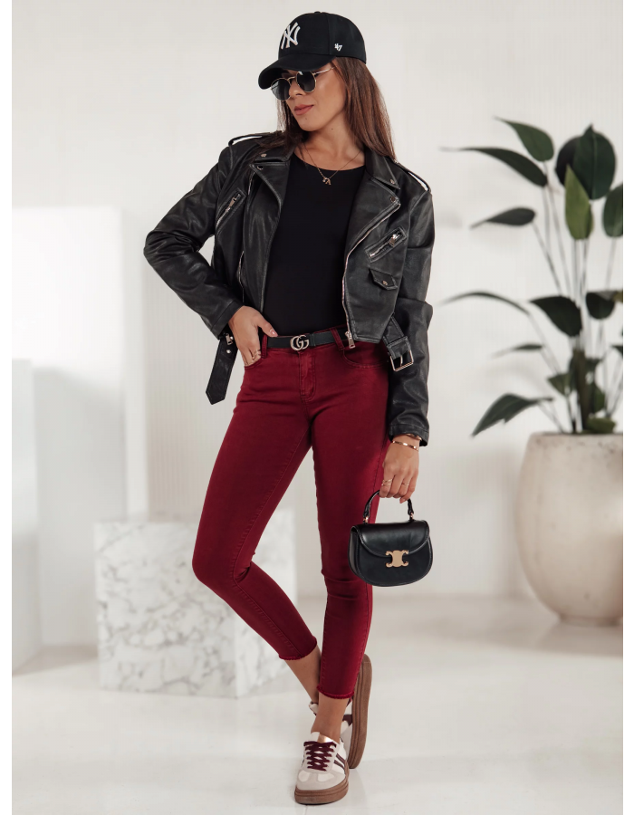 Přiléhavé kalhoty, které spojují pohodlí a moderní styl. Dokonalé pro každodenní stylizace, hodí se jak na setkání s přáteli, tak i do kanceláře. Výjimečný střih zdůrazňuje přednosti postavy a vysoce kvalitní materiál zajišťuje pohodlí při nošení po celý den. Stylový a elegantní doplněk do tvého šatníku, který jistě přitáhne pohledy.