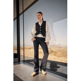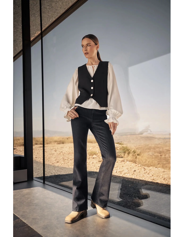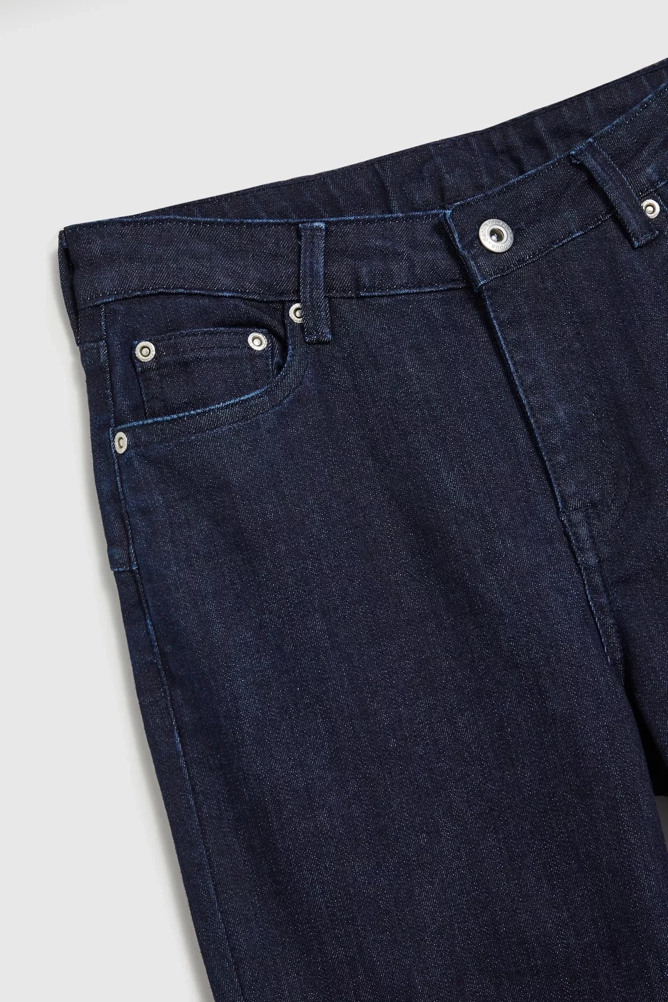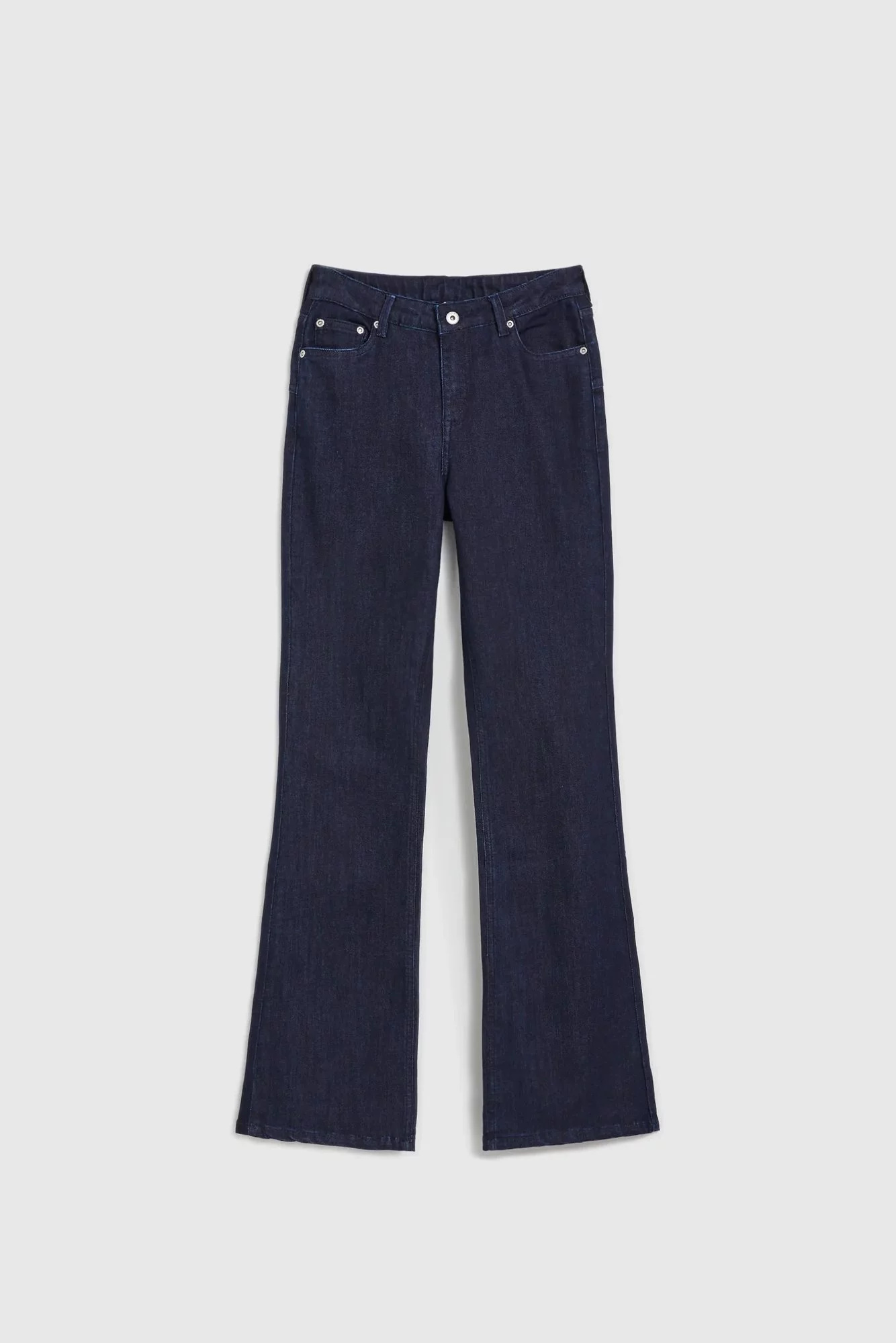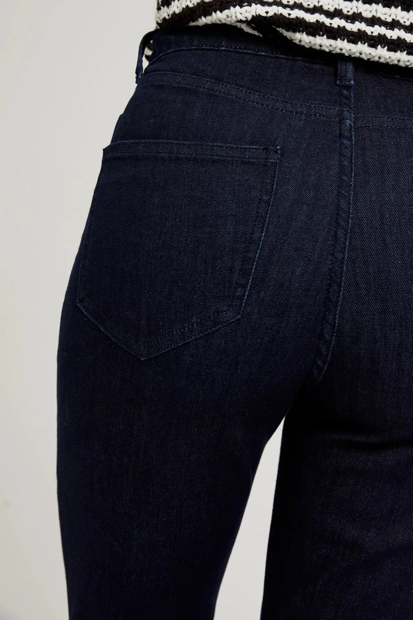 98,5% BAVLNA, 1,5% ELASTAN Džíny v tmavě modré barvě jsou skvělou volbou pro každou ženu, která si cení pohodlí a stylu. Vyrobené z vysoce kvalitní bavlny, hladké, bez vzoru džíny zajišťují pohodlí při nošení po celý den. Zapínání na zip usnadňuje jejich oblékání a svlékání, což je další výhodou tohoto produktu. Džíny v tmavě modré barvě jsou ideální volbou pro mnoho příležitostí, jak pro každodenní nošení, tak i pro formálnější setkání. Dokonale se hodí jak ke sportovním botám, tak k elegantním lodičkám. Lze je zkombinovat se základním tričkem nebo elegantní košilí v závislosti na preferovaném stylu. Díky univerzální barvě a střihu budou tyto džíny skvělým doplňkem každého dámského šatníku.