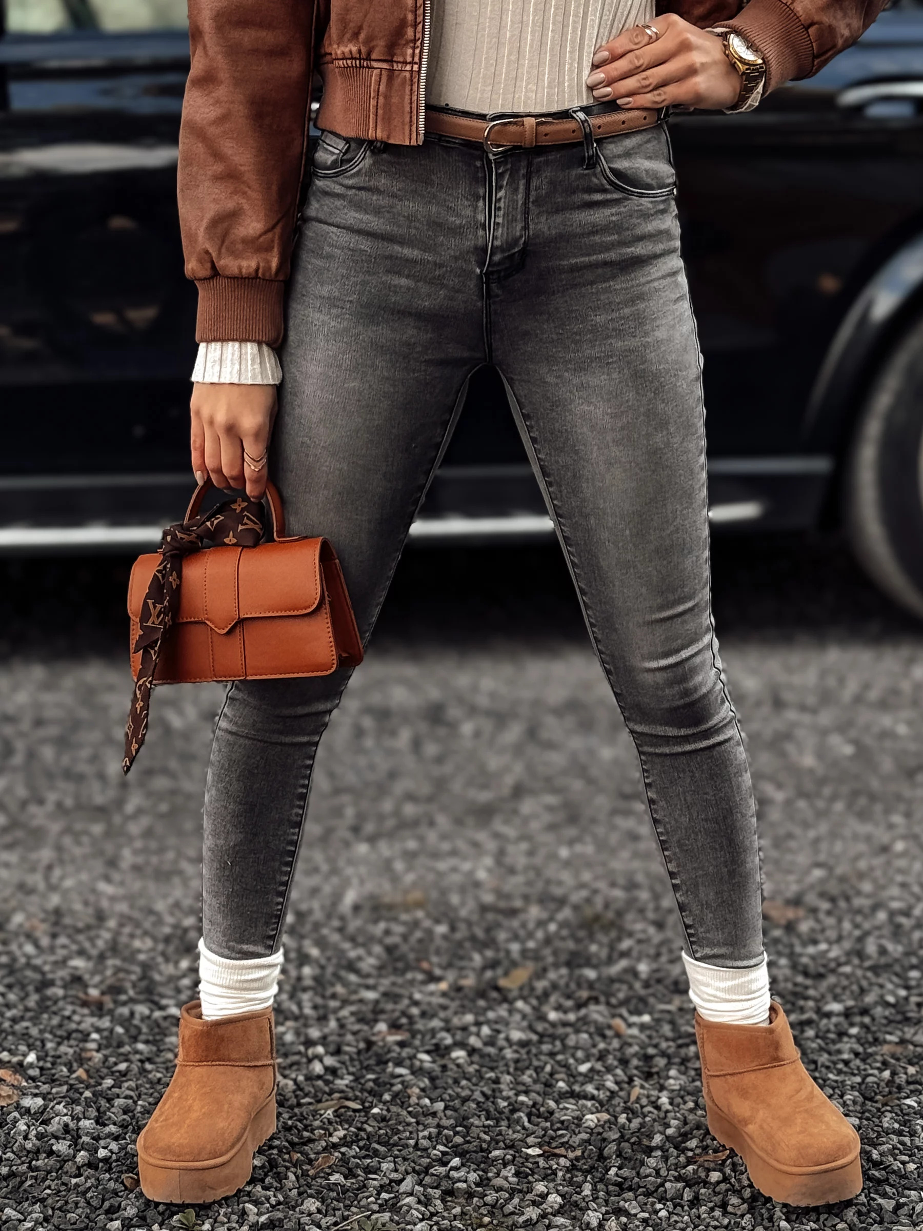 Stylové kalhoty s přiléhavým střihem, které zdůrazňují postavu, se hodí do každodenních stylizací. Jejich elastický materiál zajišťuje pohodlí při nošení po celý den a minimalistický design umožňuje snadné kombinování s různými doplňky. To je ideální návrh na procházku po městě nebo na neformální setkání, který dodá styl každé sestavě.