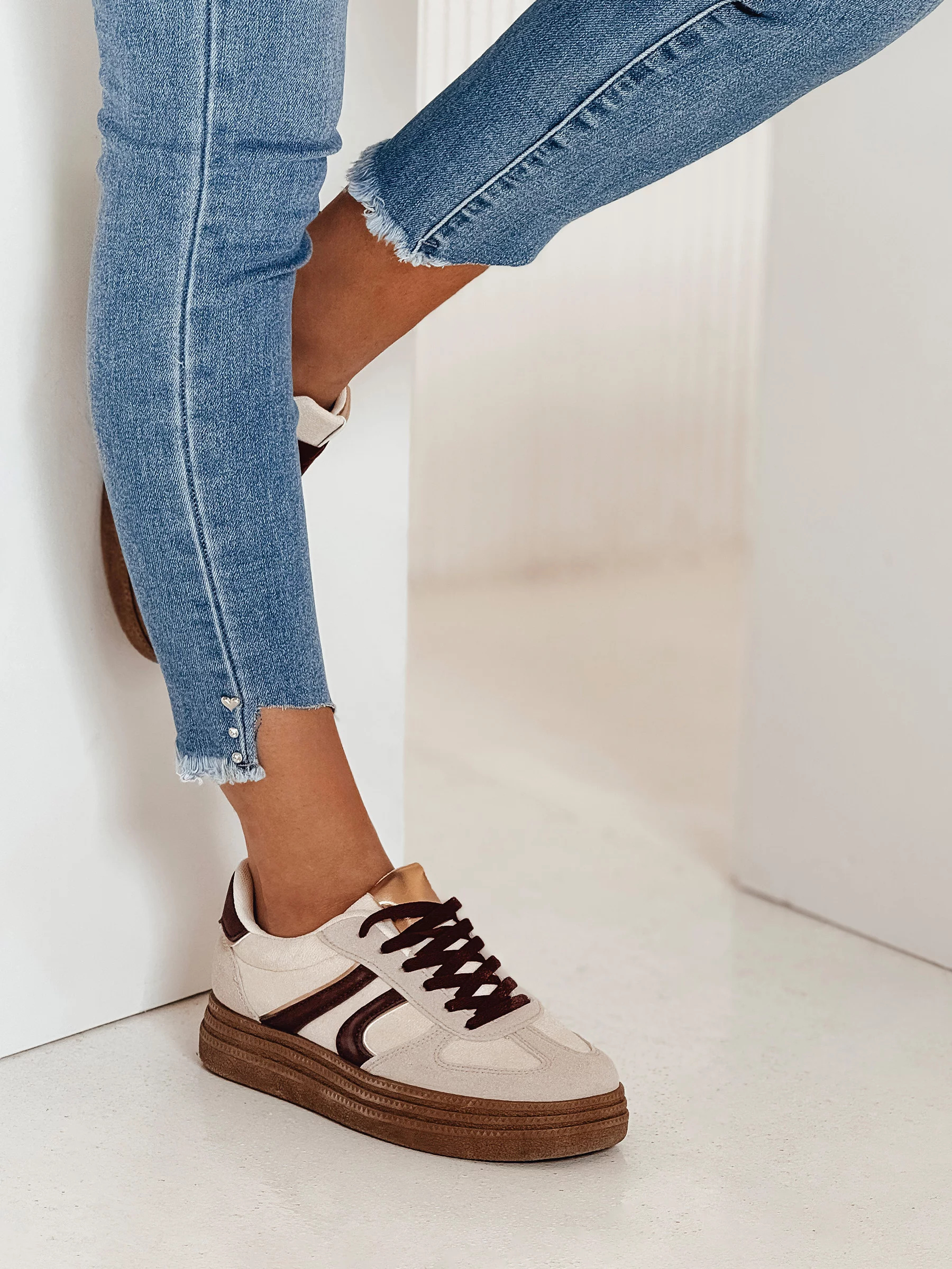 Pohodlné džíny s vysokým pasem, které dokonale zvýrazňují postavu. Jejich klasický střih z nich činí vynikající volbu pro každodenní outfity a jemné oděrky jim dodávají moderní charakter. Tyto kalhoty jsou vyrobeny z elastického materiálu, který zajišťuje pohodlí při nošení po celý den. Skvěle se hodí jak k ležérním, tak k elegantnějším prvkům šatníku.