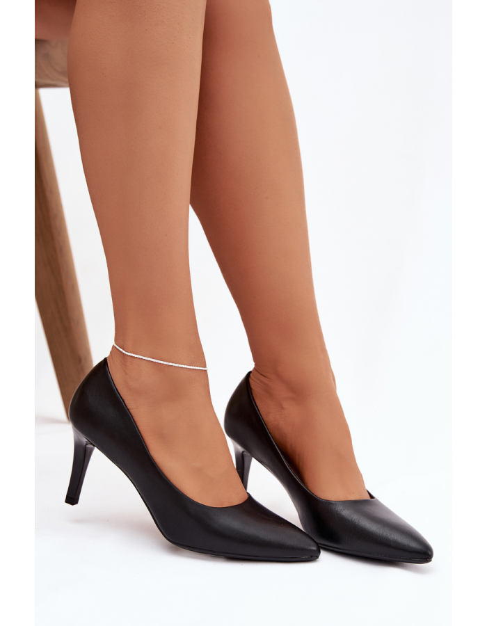 Elegantní černé lodičky Sergio Leone z eko-kůže kombinují stylový vzhled s pohodlím. Vysoký podpatek dodává botám sofistikovanou siluetu a opticky prodlužuje nohy, zatímco kvalitní eko-kožený materiál zajišťuje příjemný pocit při nošení. Ideální volba pro ženy, které chtějí klasickou a elegantní obuv vhodnou pro různé příležitosti.