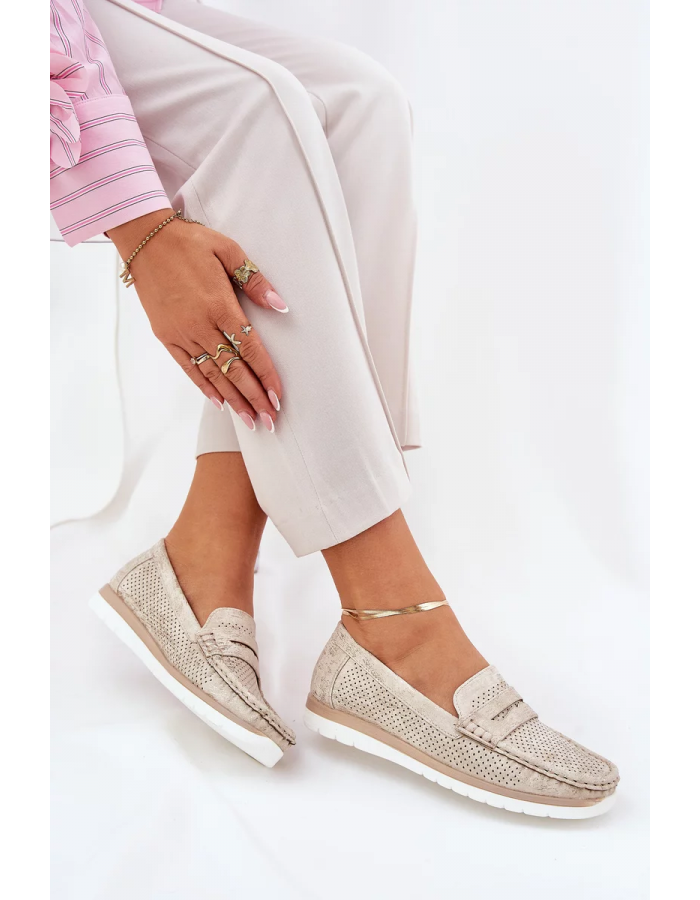Ke stříbrným mokasínám Bralithia doporučujeme kombinovat neutrální oblečení, aby boty zůstaly výrazným doplňkem outfitu.