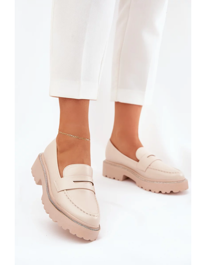 Elegantní béžové mokasíny Wilamla z eko kůže kombinují pohodlí s jemným zdobením. Plochá podrážka a měkký materiál zajišťují komfort po celý den, zatímco třpytivé detaily dodávají botám sofistikovaný a stylový vzhled vhodný k různým outfitům. Ideální volba pro ženy, které chtějí elegantní a zároveň pohodlné boty.