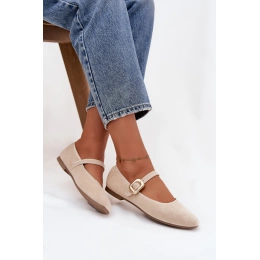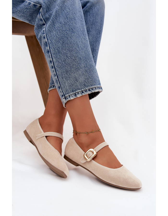 Elegantní světle béžové baleríny Adelora z eko semiše kombinují pohodlí s jemným a nadčasovým designem. Plochá podrážka a měkký materiál zajišťují komfort po celý den, zatímco pásek se zlatou přezkou dodává obuvi sofistikovaný a ženský akcent. Skvělá volba pro každodenní i elegantnější outfity.