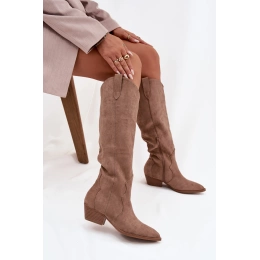 Stylové béžové kovbojky Jenaya z eko-semiše kombinují moderní design s pohodlím. Stabilní podpatek dodává botám elegantní siluetu, zatímco měkký materiál zajišťuje komfort při nošení. Ideální volba pro ženy, které chtějí výrazný a módní doplněk svého outfitu.