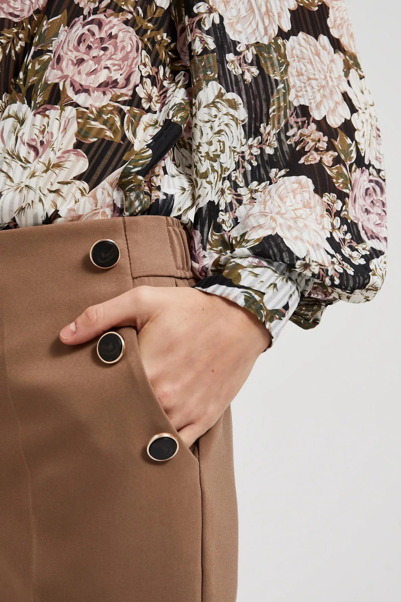 Dámské elegantní kalhoty MOODO - béžová Velikost: XS