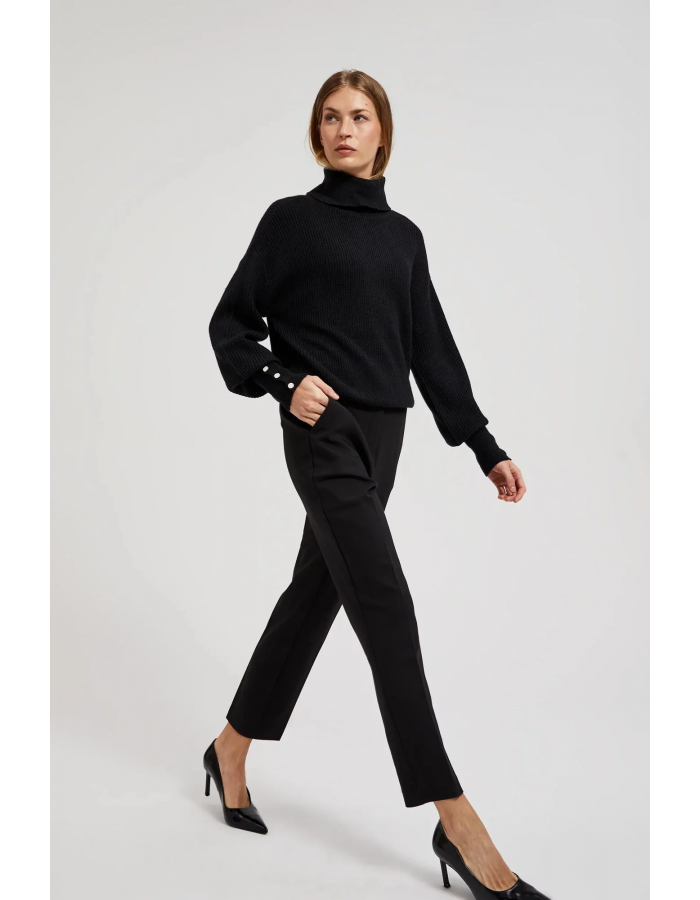 Dámské elegantní kalhoty s řasením MOODO - černé Velikost: XXL