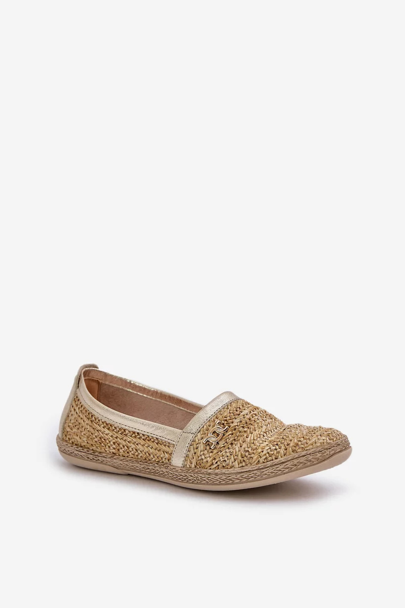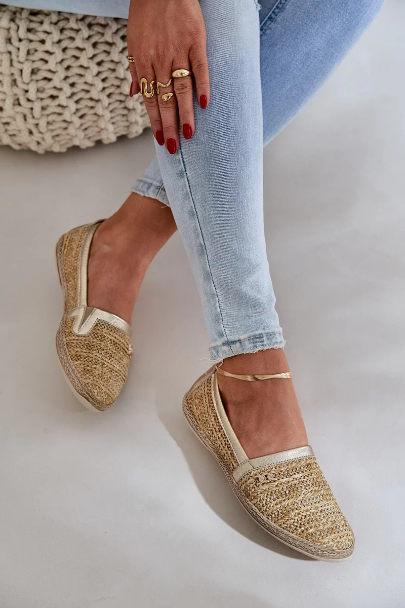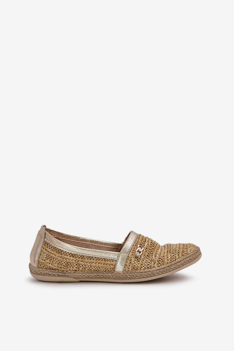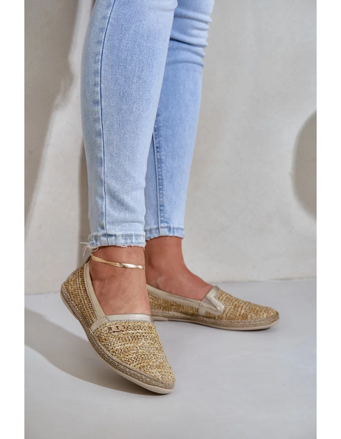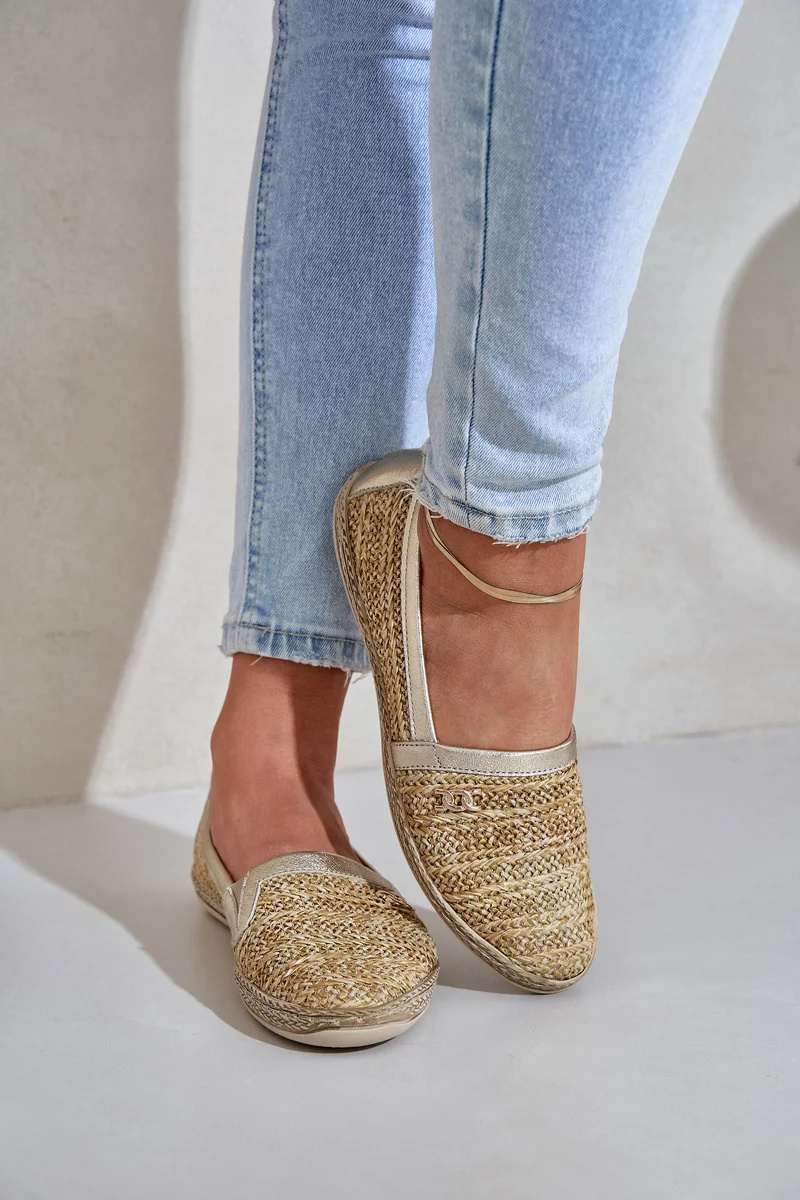 Dámské espadrilky Zazoo v béžovo-zlatém provedení představují elegantní pojetí letní obuvi. Kožený svršek v kombinaci s jemným pleteným detailem dodává modelu sofistikovaný vzhled, zatímco světlá barevná kombinace působí jemně a nadčasově. Pohodlný střih a lehká konstrukce zajišťují komfort při celodenním nošení, ať už ve městě nebo na dovolené.