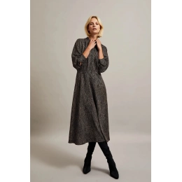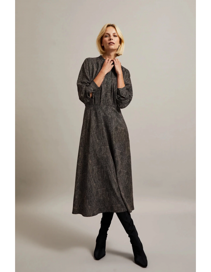 Dámské elegantní midi šaty s malými tečkami MOODO - černé Velikost: XXL