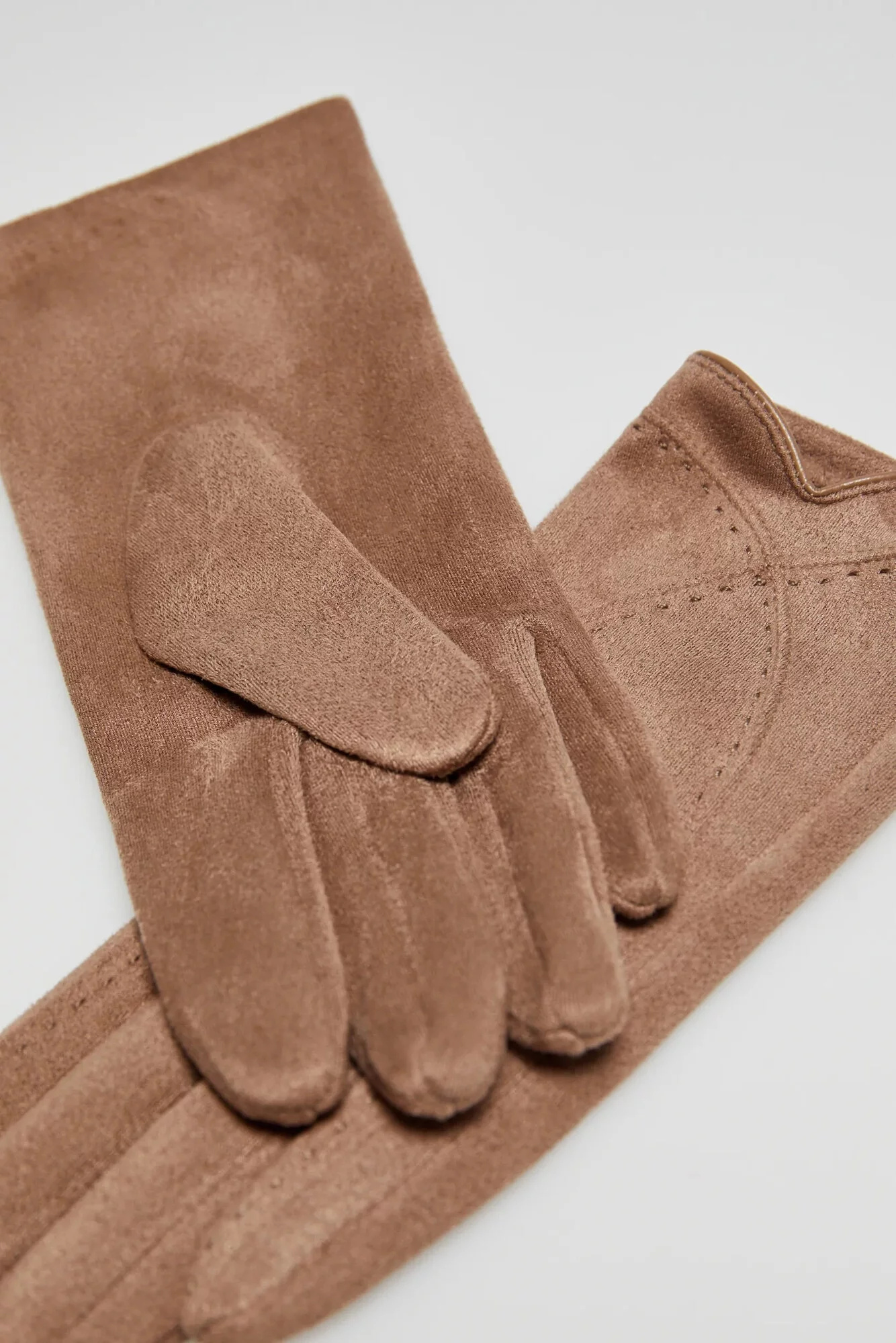 100% POLYESTER Elegantní rukavice v béžové barvě bez vzoru, vyrobené z hladkého materiálu. Vyrobeno z vysoce kvalitního polyesteru, ozdobeno jemnou výšivkou. Tento produkt se vyznačuje vysokou kvalitou zpracování a trvanlivostí. Tyto rukavice budou skvělým doplňkem k běžným stylizacím, jak pro každodenní nošení, tak pro speciální příležitosti. Ideálně se hodí k plášti, svetru nebo elegantnímu kabátu.
