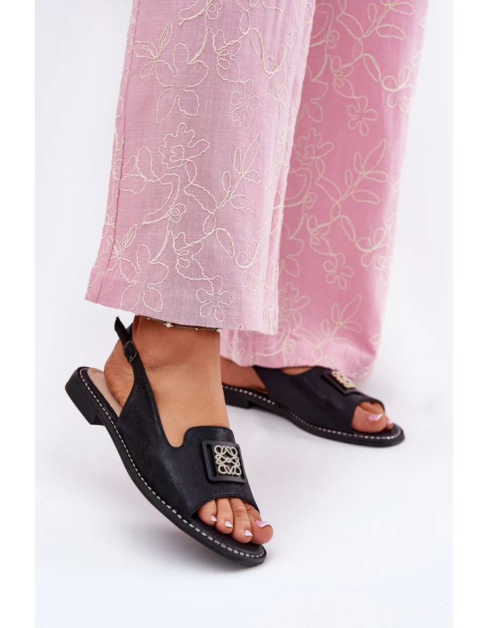 Elegantní dámské sandály S.Barski v černém provedení jsou stylovou volbou pro teplé dny i společenské příležitosti. Nízký podpatek zajišťuje pohodlný a stabilní došlap, zatímco ozdobný detail na nártu dodává botám jemný, sofistikovaný vzhled. Černá barva působí nadčasově a snadno se kombinuje s různými outfity – od šatů po elegantní kalhoty.
