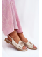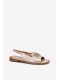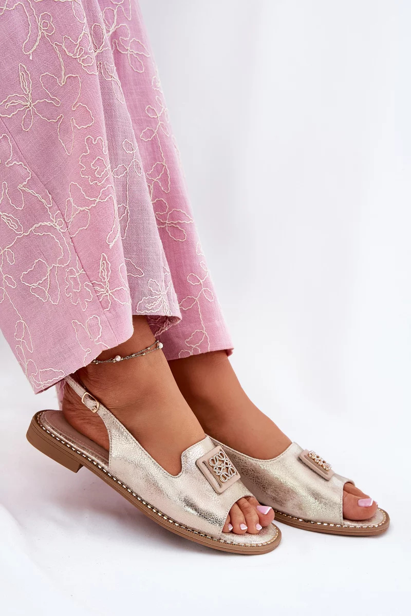 Elegantní dámské sandály S.Barski ve zlatém provedení jsou ideální volbou pro teplé dny i slavnostní příležitosti. Nízký podpatek zajišťuje pohodlný a stabilní došlap, zatímco ozdobný detail dodává obuvi jemný a stylový akcent. Zlatá barva působí luxusně a nadčasově, takže sandály snadno zkombinujete s různými outfity – od elegantních šatů až po společenské kalhoty.