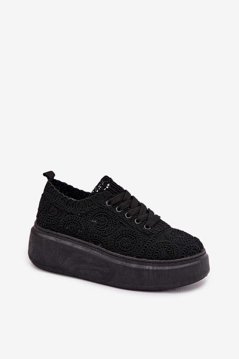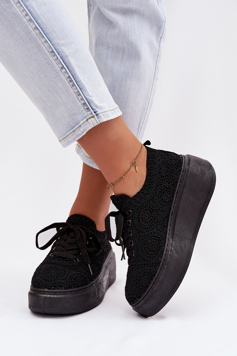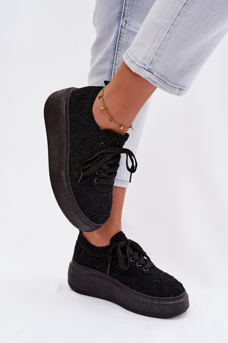 Černé háčkované tenisky na platformě skvěle doplní minimalistické outfity, letní šaty i kalhoty a dodají jim moderní nádech.