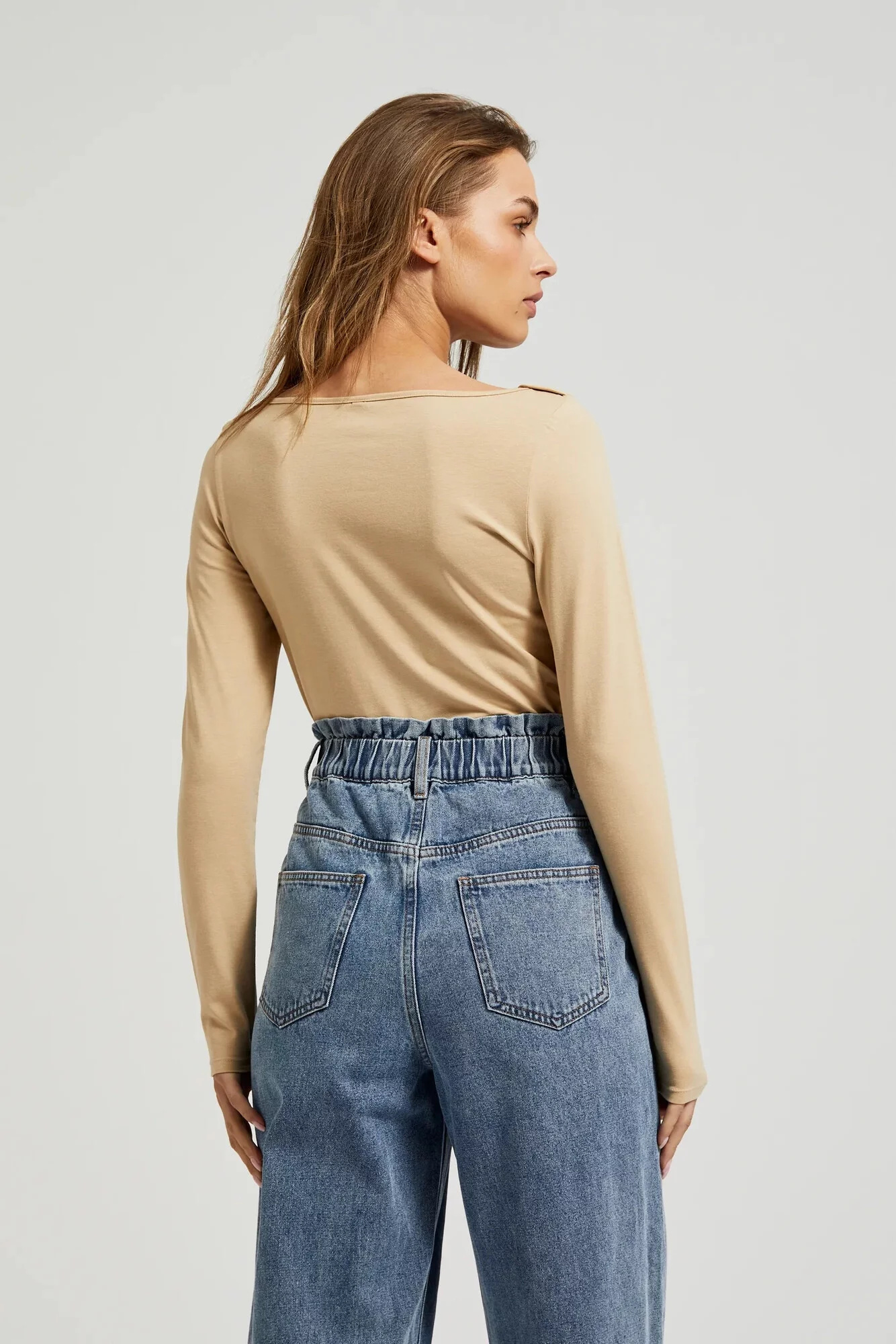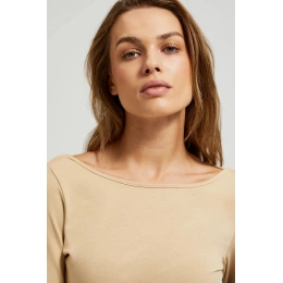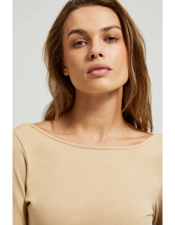 95%BAVLNA, 5%ELASTAN Blůza v béžové barvě je ideální volbou pro každou ženu, která si cení pohodlí a stylu. Vyrobená z vysoce kvalitní bavlny, hladká na dotek zajistí pohodlí při nošení. Dlouhý rukáv a přiléhavý střih zdůrazní přednosti postavy, zatímco lodičkový výstřih dodává eleganci. Halenka bude skvělou volbou pro mnoho různých příležitostí. Hodí se jak k běžným stylizacím, tak k elegantním outfitům. Dokonale se hodí jak k džínům, sukni, tak i k elegantním kalhotám. To univerzální a nadčasový prvek šatníku, který zajistí, že budete vždy vypadat módně a stylově.
