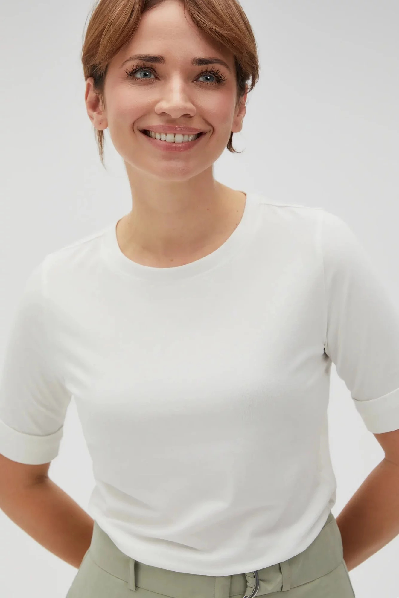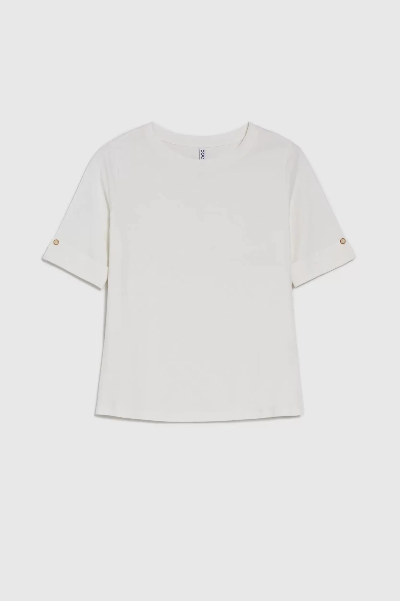SKŁAD MATERIAŁOWY: 95% BAWEŁNA, 5% ELASTAN Bluzka w kremowym kolorze to idealny wybór dla kobiet ceniących sobie wygodę i styl. Wykonana z miękkiej bawełny, gładka i przyjemna w dotyku. Krótki rękaw z mankietem oraz okrągły dekolt dodają bluzce elegancji. Dopasowany krój podkreśla kobiecą sylwetkę, sprawiając że każda kobieta będzie wyglądać zjawiskowo. Ta uniwersalna bluzka będzie idealna na wiele okazji - zarówno do pracy, na spotkanie ze znajomymi jak i na spacer. Można ją zestawić zarówno z jeansami, spódnicą jak i eleganckimi spodniami, tworząc różnorodne stylizacje. To must-have w garderobie każdej kobiety!