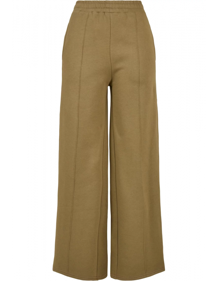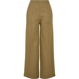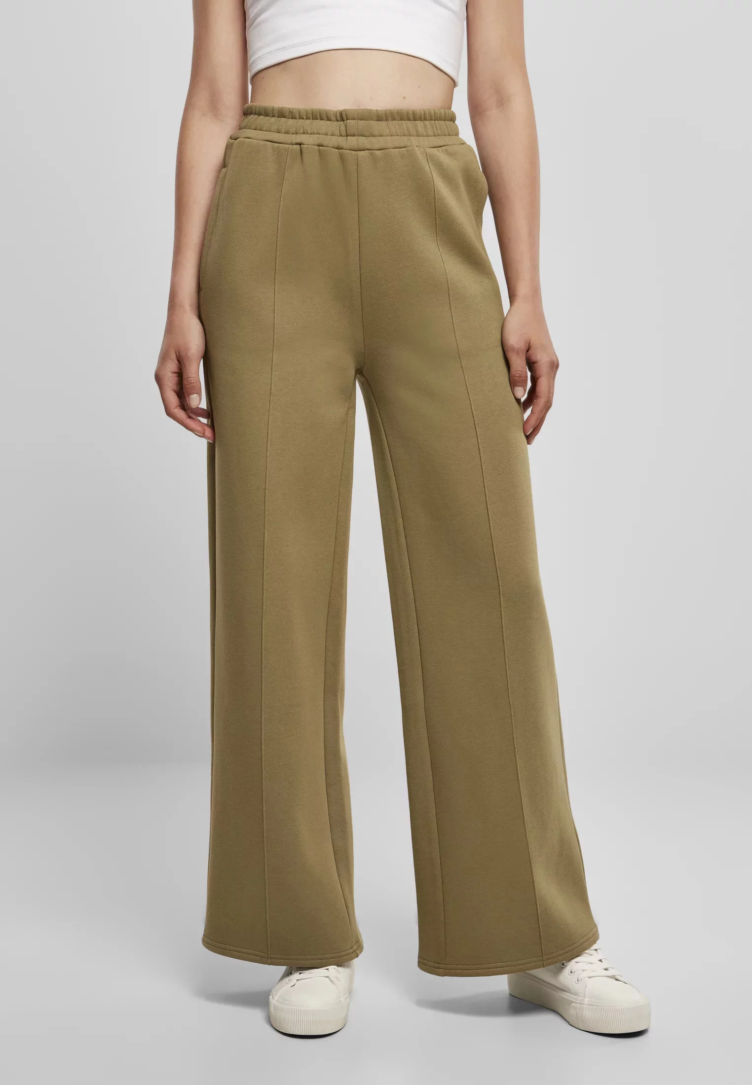 Tyto dámské kalhoty kombinují pohodlí z potu se stylem plisovaných kalhot. Skládají se z hladkého česaného fleecu a jsou příjemné na nošení. Nabízejí také boční kapsy a elastický pas se stahovacími šňůrkami na vnitřní straně. Stylové akcenty dodávají široké rovné nohavice a prošívané podélné záhyby na přední a zadní straně.