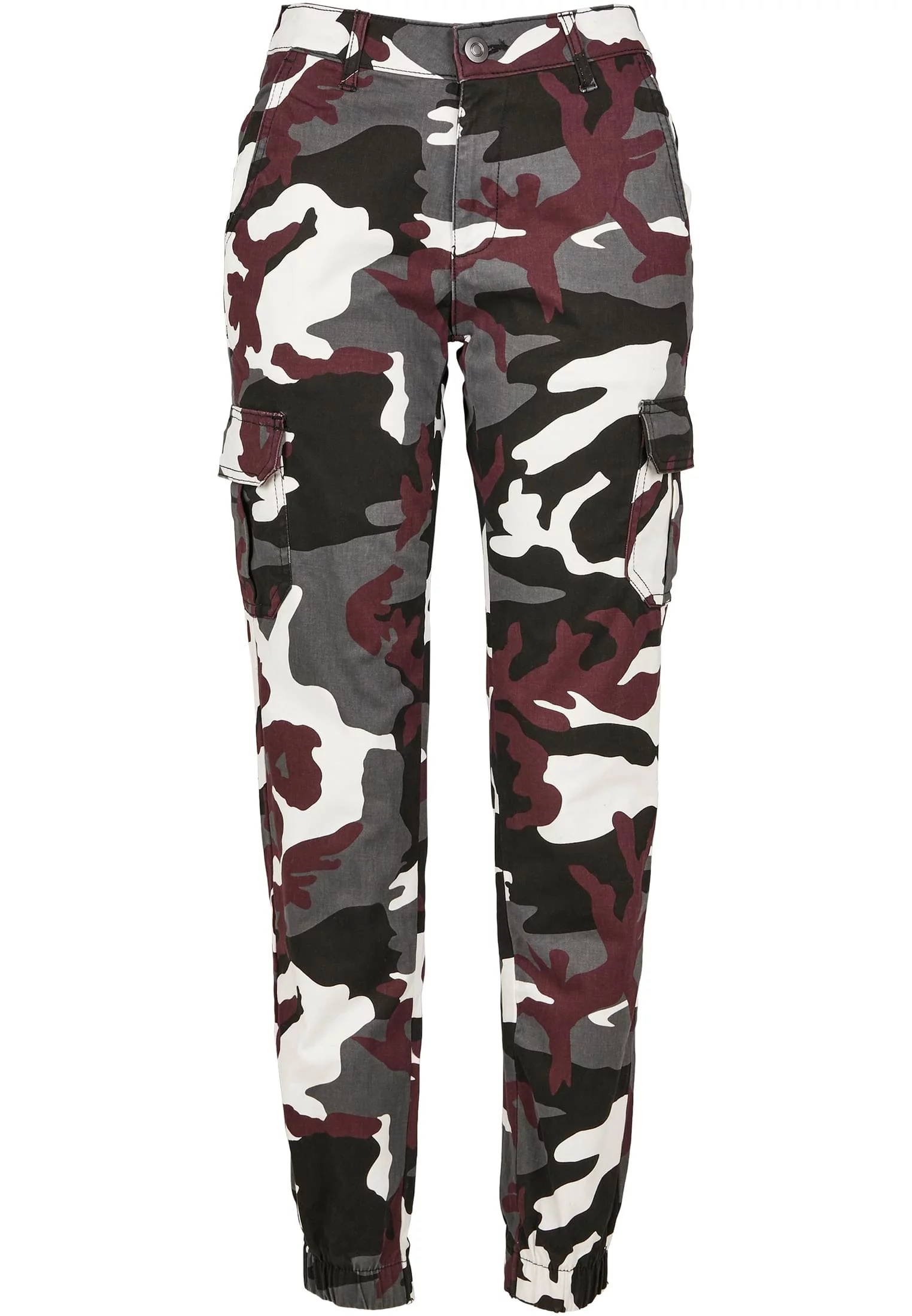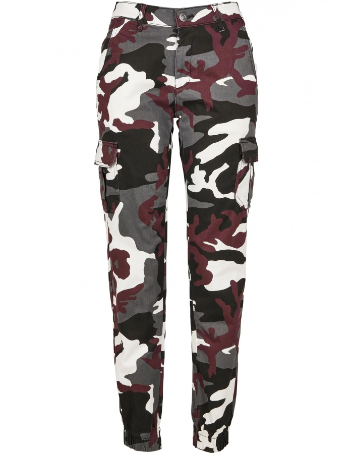 Dámské kalhoty Camo Cargo s vysokým pasem s vínovou maskou