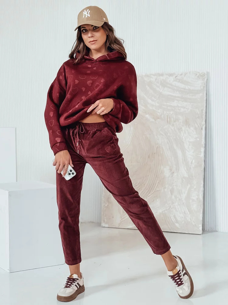 Dámské kalhoty casual one size VELVITO manšestrové bordó Dstreet UY2287 Univerzální