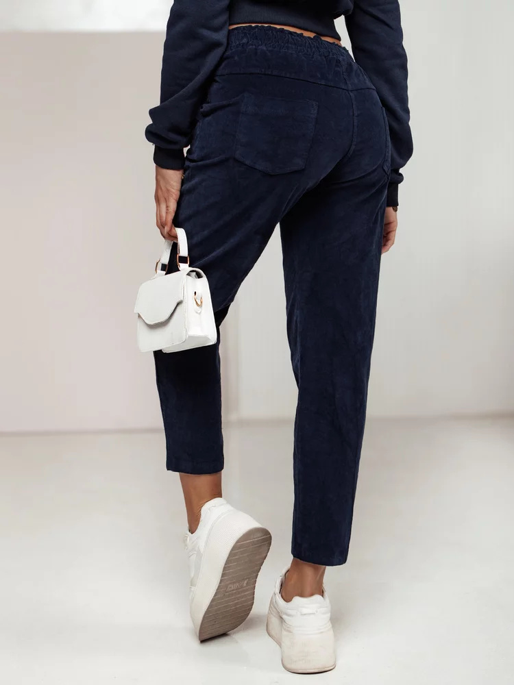 Měkké, manšestrové kalhoty volného střihu, které zajistí pohodlí po celý den. Elastický pas a praktické kapsy jim dodávají funkčnost, zatímco jemný detail ve tvaru srdce přidává na půvabu. Ideální pro každodenní stylizace v kombinaci s oblíbeným svetrem nebo mikinou. Nadčasový design a vysoká kvalita materiálu z něj činí volbu, která poslouží na delší dobu.