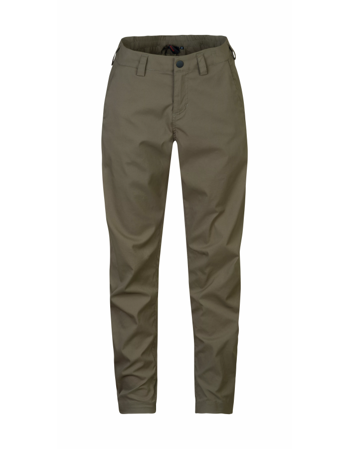 Dámské lehké kalhoty z elastického materiálu Stretch fabric. Pružné a zároveň pevné kalhoty ze syntetických materiálů s technologií Stretch Fabric mají pas částečně v zadní části stažený do gumy. Jednoduché provedení kalhot se zakončením v zadní dolní části nohavic do gumy. Dvě hlavní kapsy vpředu a dvě zadní kapsy vzadu. Pas s poutky na pásek. Kalhoty využijete na denní nošení, cestování i do přírody.