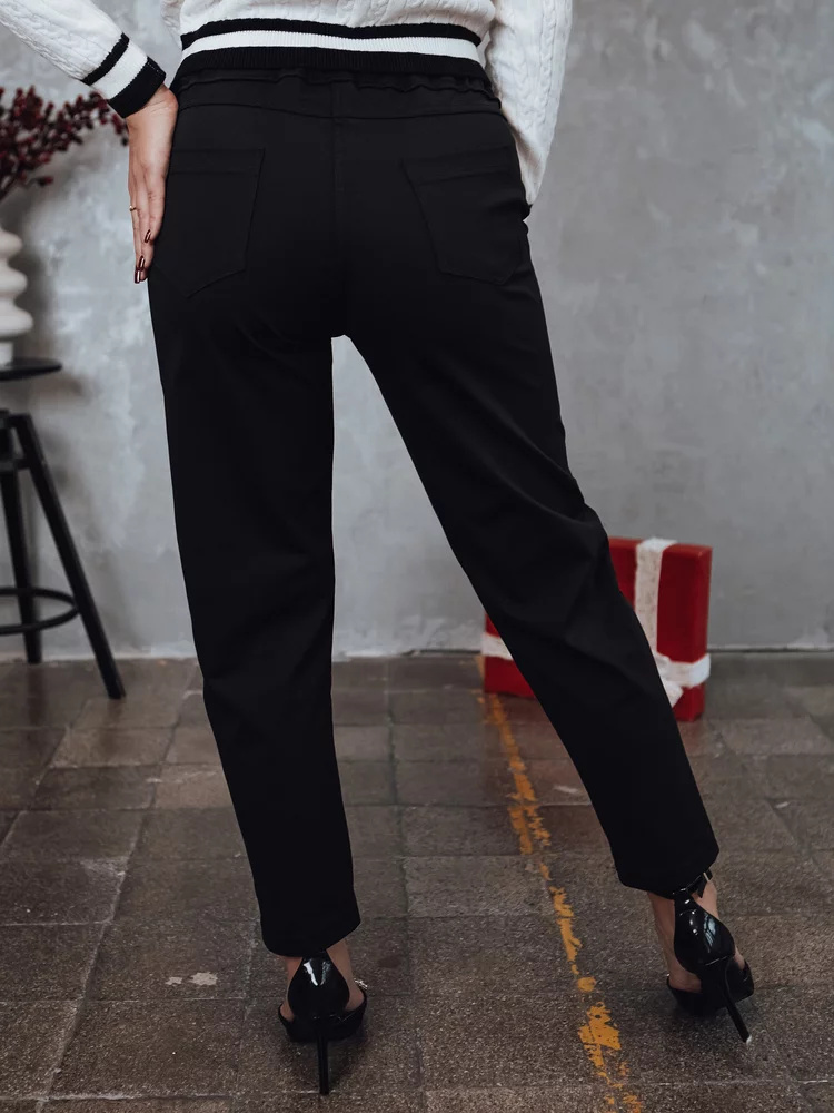 Kalhoty s elegantním střihem, ideální pro vytváření stylizací na výjimečné příležitosti a každodenní vycházky. Měkký materiál a jemné ozdoby u šňůrky dodávají nádech ženskosti, zatímco jednoduchý střih zajišťuje pohodlí při nošení. Ideální pro stylizace s klasickými botami na podpatku. Univerzální model, který se hodí do každého šatníku.