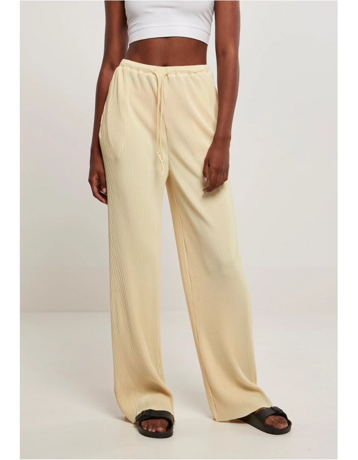 Dámské kalhoty, které inspirují materiálem a tvarem. Vybraná plissé látka se snadno složí a obepne kolem nohou. Doprovodný široký a volný střih přesně zapadá do designu. Plisé kalhoty pohodlně sedí v pase, mají vysoký elastický pas a lze je snadno upravit pomocí prodloužených šňůrek.