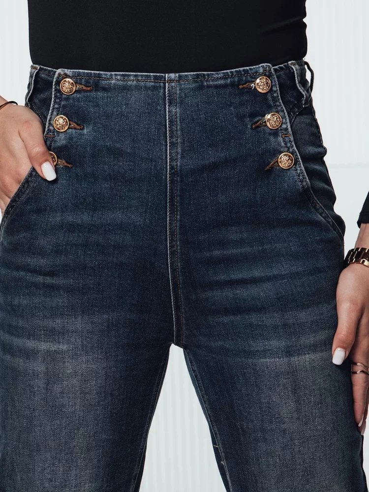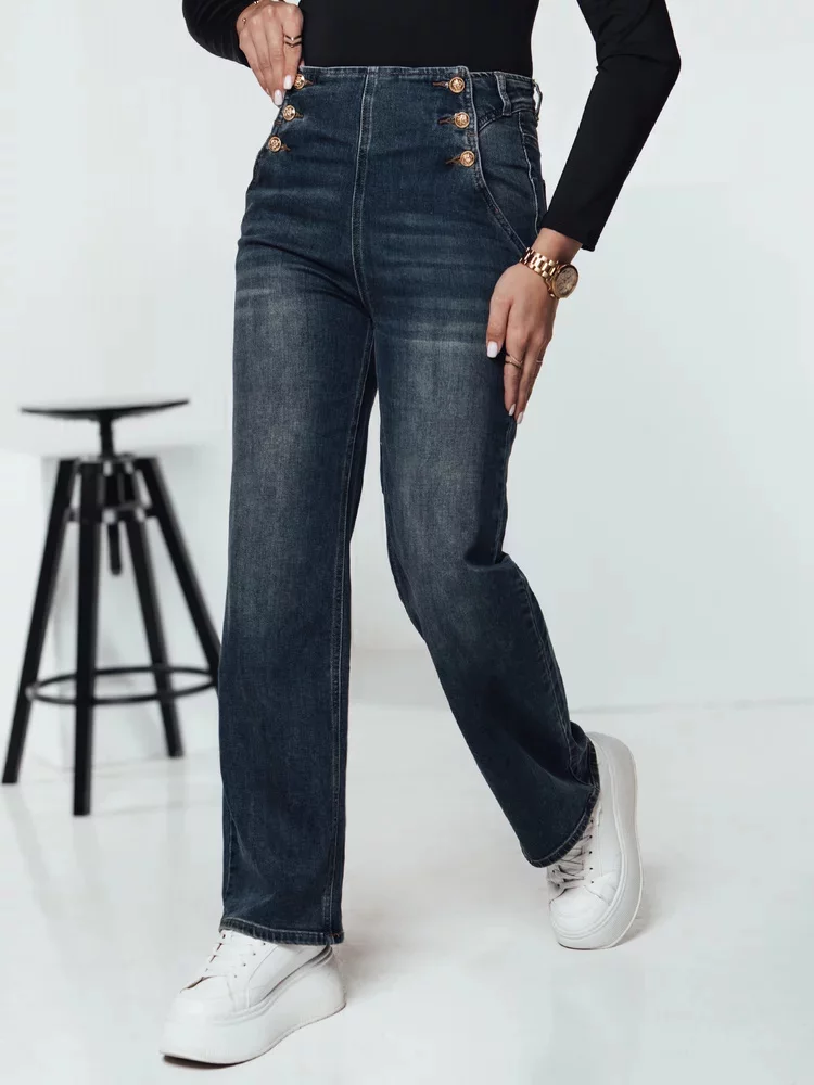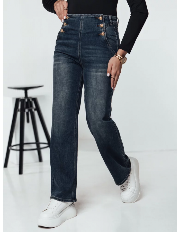 Kalhoty s vysokým pasem, které spojují pohodlí a eleganci. Zlaté knoflíky u pásku dodávají eleganci a šmrnc, a jednoduchý střih prodlužuje postavu. Ideální jak pro neformální stylizace, tak pro formálnější kombinace. Materiál zaručuje pohodlí při nošení po celý den.