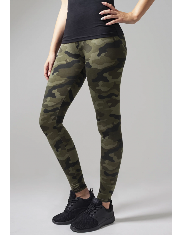 Dámské kamuflážní legíny URBAN CLASSICS přesvědčí maskáčovým vzorem, který vylepší každý outfit. Elastický pas a měkká tkanina zajišťují vysoký komfort nošení.