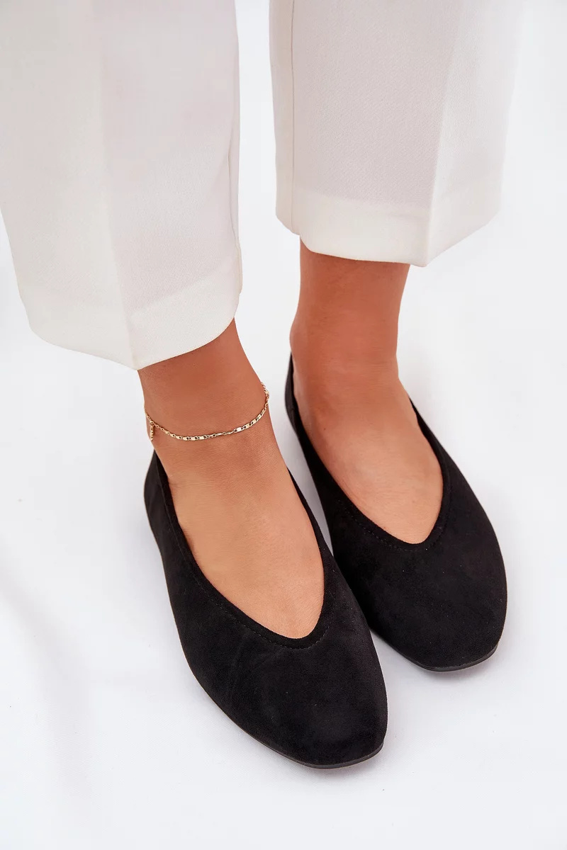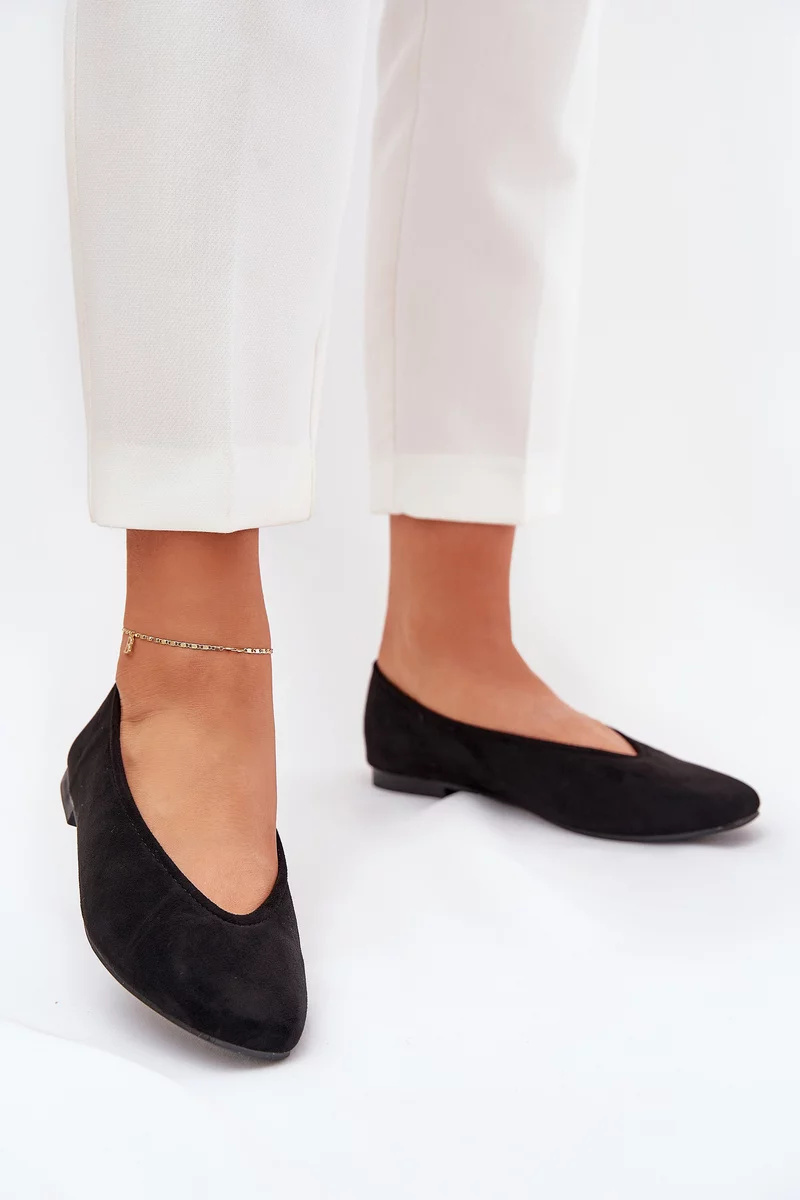 Černé baleríny z eko semiše jsou ideální volbou k elegantním i casual outfitům a patří mezi základní kousky šatníku.