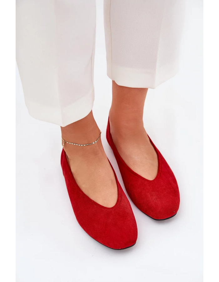 Dámské baleríny Osallin v červeném provedení představují nadčasový model vhodný pro každodenní nošení. Svršek z eko semiše působí jemně a elegantně, zatímco klasický střih balerín zajišťuje pohodlí při chůzi. Výrazná červená barva dodá outfitu energii a stylový akcent, ať už do práce nebo na volný čas.