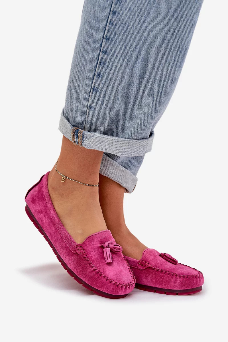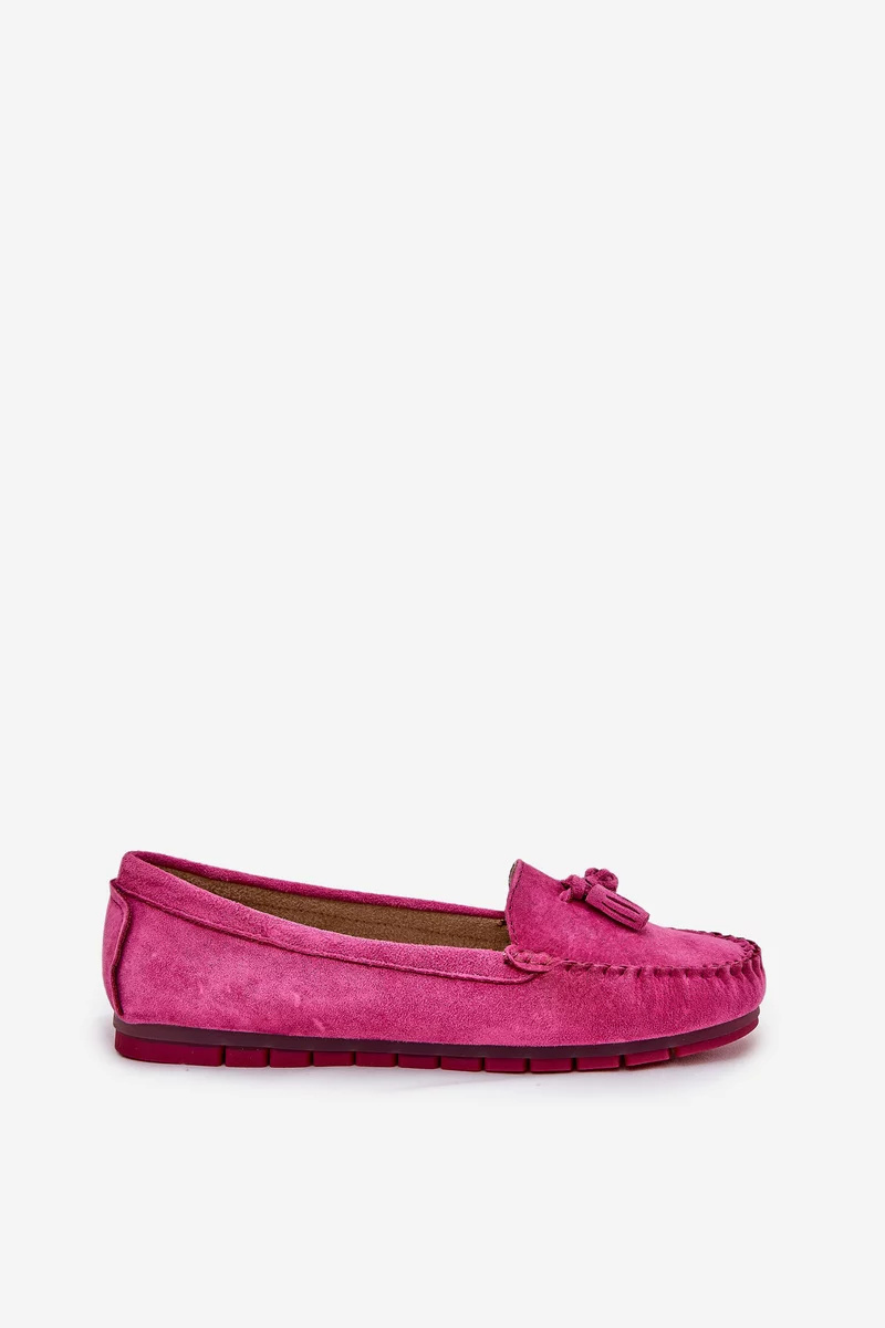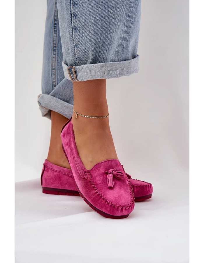 Stylové fuchsiové mokasíny S.Barski z jemného semiše kombinují pohodlí s nadčasovým designem. Plochá podrážka a měkký materiál zajišťují komfort po celý den, zatímco výrazná fuchsiová barva dodává botám módní a elegantní vzhled vhodný k různým outfitům.